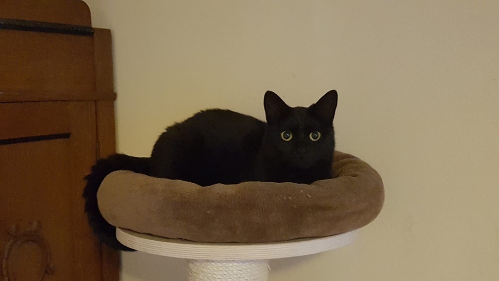 Carla und ihre Geschwister stammen von der netten Mutterkatze Hope ab. Leider hatten sich die Welpen mit dem Katzenschnupfenvirus infiziert, bevor überhaupt ihre Augen geöffnet waren. Sie haben alles gut überstanden; nur Lucy hat eine Trübung auf ihrem rechten Auge davongetragen, die sie aber nicht weiter beeinträchtigt.