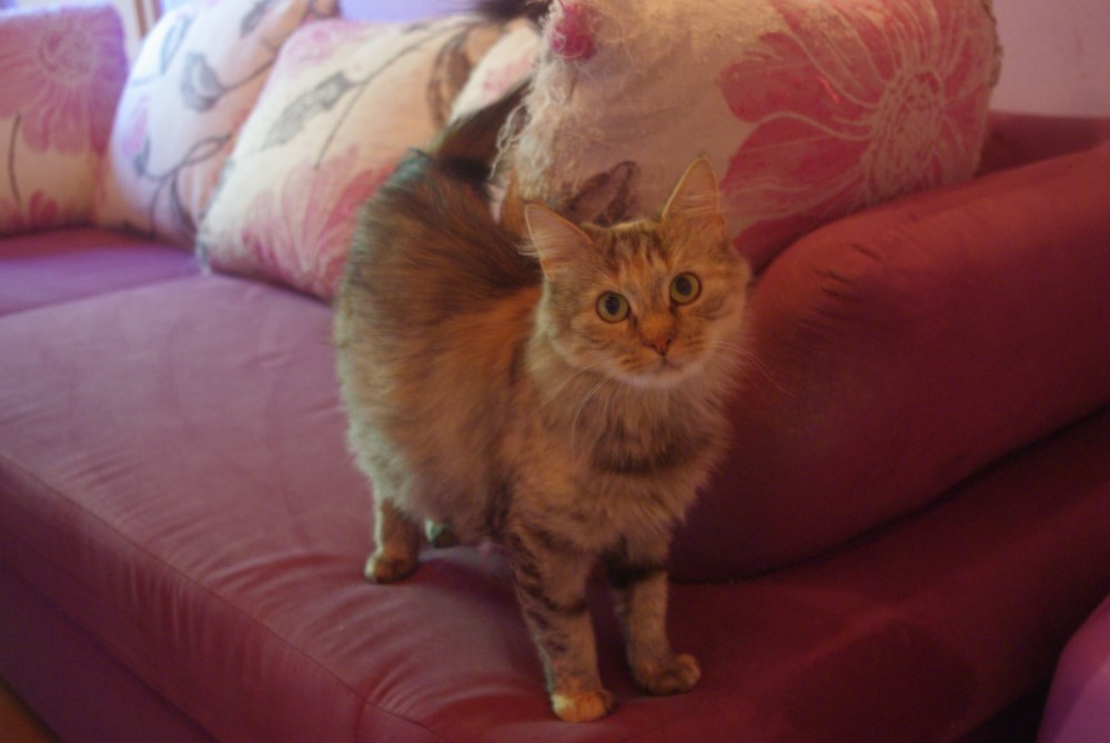 Kisha kam mit ihren erst wenige Tage alten Katzenwelpen zu uns. Ein Bürger rief bei uns an und erzählte uns, dass sich in seinem Schnuppen in einer alten Werkzeugkiste eine Katze mit Babies befindet. Da die Nachbarhunde katzenunverträglich sind und es schon zu traurigen Vorfällen mit Katzen gekommen war, holten wir Kisha mit ihren fünf Welpen schnell ab. Kisha war die erste Zeit sehr unsicher und ängstlich, doch nach einigen Wochen kam sie zur Ruhe. Sie kümmert sich immer noch rührend um ihre Kinder und hat auch drei weitere Katzenwelpen aufgenommen. Kisha ist eine liebe, ruhige Katze. Wir würden sie gerne mit einem ihrer Welpen, oder zu einer anderen sozialen Katze vermitteln. Ein vernetzter Balkon oder katzensicherer Garten sollte in ihrem neuen Zuhause vorhanden sein.